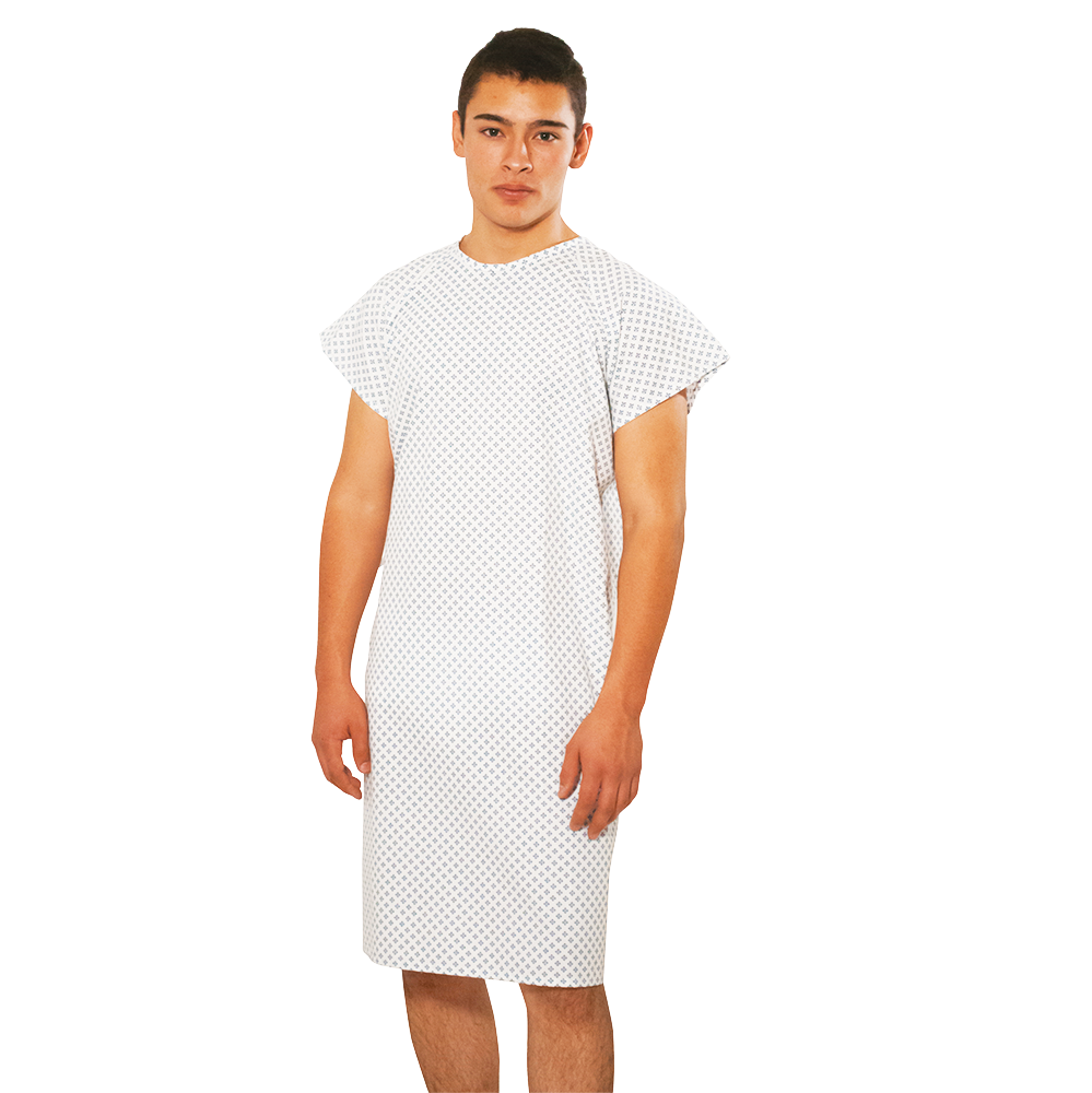 Bata para paciente cruzada estampado diseño diamante, seleccionado psicológicamente para otorgar un mejor ambiente a sus pacientes durante su estancia.
